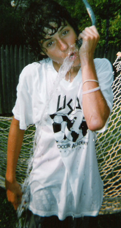 Sometimes I wore a jeans shirt with long sleeves, so I would fill the pots and pans sink up to the brim with water and place a number of dirty pots in the water at the bottom, so I would have to reach down to the bottom to retreive them, soaking my shirt sleeve to the armpit. Then I would bring the pot to the surface with it full of water, place the pot against my stomach and vigorously scrub it out with water heading down my shirt and jeans.